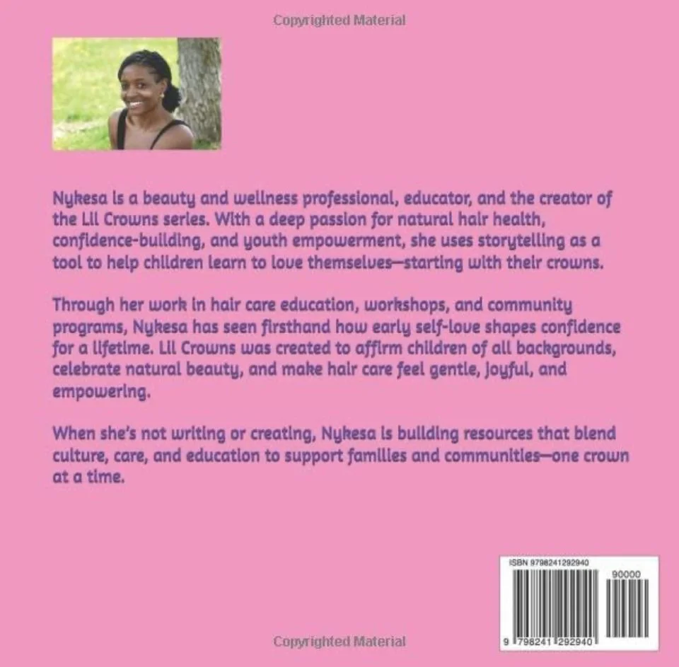 Lil’ Crowns, Big Confidence is a children’s set created for infants through early elementary readers that builds confidence, patience, and self-expression through natural hair care and self-love. Each book uses gentle storytelling, relatable characters, and culturally affirming language to help children understand that caring for their crown is an act of pride, creativity, and respect for themselves.